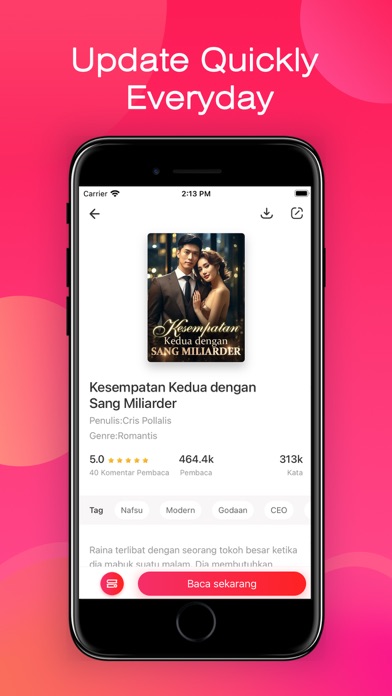 Ceriaca provides millions of high-quality novels including various kinds of book genres - There are both excellent native novels and translated novels here - Become An Author to get your writing dream come true **Read Best Romance Fiction!** [Key Features] * Many Many Books Provides both paid and free ebooks including romance, werewolf/vampire, billionaire, marriage, action, adventure, fantasy, young adult fiction, fanfiction, LGBT, classic, xuanhuan, wuxia novel & more original work. New stories updated daily! * Free Offer & Sale Free books and special offers; Free trial reading chapters and episodes; Free vouchers for you to buy paid ebooks and chapters. * Customizable Reading Features Build up your own bookshelf and enrich your collections. Real paper book simulation, text size adjustment, night theme and more for you to find the best reading style. * Read Books Offline Save and preload your favourite stories and take them with you wherever you go, even when you're offline. Import books from your phone and read EPUB files, text documents, UMD files and other 30 file formats of e-books * Audiobooks Listen to all your favourite ebooks with our easy to use audiobook player. About Auto-Renewable Subscriptions - Auto-renewable subscriptions in the app include Check-in Coins Packs. - Daily Coins Bundle: $5, $10 and $15 - Payment: The purchase will be charged to your iTunes account. - Renewal: When you subscribe to check-in coins pack, your subscription will renew automatically. You'll be charged at the start of each billing cycle until you cancel your subscription. Subscriptions are automatically charged each billing period, whether monthly or another period, and you may be charged no more than 24 hours before the beginning of each billing period. - Cancellation: You may cancel a subscription at any time more than 24 hours before your renewal date. - Privacy Policy: https://staticpage-en.cdreader.com/ID/AppPrivacyPolicy.html?client_proid=221&mt=1 -Subscription Terms and Conditions: https://staticpage-en.cdreader.com/ID/membership_service.html?client_proid=221&mt=1 - Terms of Use: https://staticpage-en.cdreader.com/ID/termsofservice.html?client_proid=221&mt=1