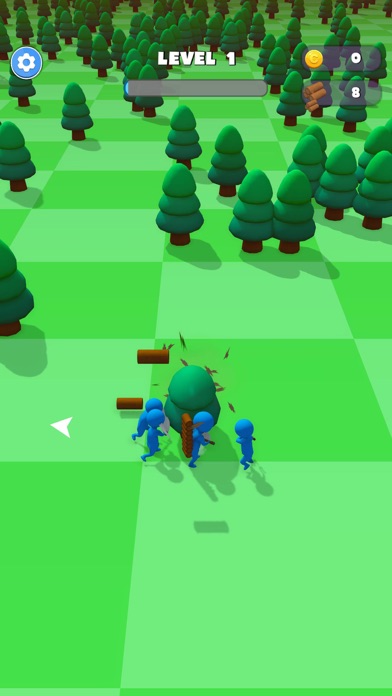 Grab your axe and chop down trees. Crowd your team with the coins you earn and grind faster!