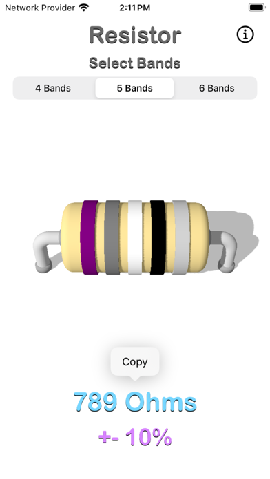 Resistor Color Code Calculator helps you determine resistor values in ohms and their tolerance based on color-coded bands. Follow these steps: - Tap and select resistor color values from the color codes: black, brown, red, orange, yellow, green, blue, violet, gray, and white. - Select the resistor band. - Tap the resistor band and choose the color value. - The result is displayed immediately after setting the color value. - The result can be copied. - Take a screenshot of the resistor for future reference. Resistor Parameters: Band Digit Black - 0 Brown - 1 Red - 2 Orange - 3 Yellow - 4 Green - 5 Blue - 6 Violet - 7 Grey - 8 White - 9 Band Multiplier Black × 1 Ω Brown × 10 Ω Red × 100 Ω Orange × 1 kΩ Yellow × 10 kΩ Green × 100 kΩ Blue × 1 MΩ Violet × 10 MΩ Gold × 0.1 Ω Silver × 0.01 Ω Band Tolerance Brown - 1% Red - 2% Gold - 5% Silver - 10% A resistor is a passive two-terminal electrical component that implements electrical resistance as a circuit element. In electronic circuits, resistors are used to reduce current flow, adjust signal levels, divide voltages, bias active elements, and terminate transmission lines, among other uses. A resistor opposes the flow of electrical current; the higher the value of the resistor, the more it opposes the current flow. Values are given in ohms. Thank you for your support! Visit nitrio.com for more apps for your iOS devices.