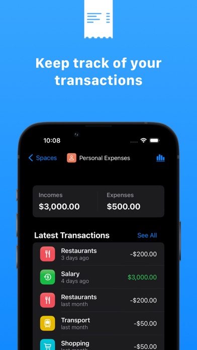 The Expenser app has been designed to help you effortlessly monitor your spending using a simple and intuitive interface that includes useful features. Additionally, you can easily synchronize all your expenses across your devices thanks to its integration with iCloud. KEY FEATURES: - Unlimited number of transactions - iCloud Sync - Ability to add notes to any of you transactions - Income, expense and transfer transactions - Multiple Accounts - Multiple sorting and filtering options to help you better organize your transactions lists - Transactions summary for the current month that will definitely help you see the entire picture of your transactions - Available on iOS, iPadOS, macOS and watchOS