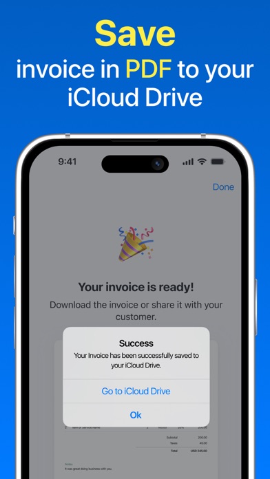 Invoice Generator is a comprehensive application designed to streamline the process of creating invoices, estimates, and receipts. The intuitive interface makes creating invoices, estimates and receipts quick and easy. With a user-friendly interface and robust features, Invoice Generator simplifies the invoicing process, saving you time and ensuring accuracy in your financial transactions. KEY FEATURES: — Simple invoicing: Create invoices effortlessly by entering basic details such as client information, itemized services, quantities, rates, and taxes. The app automates calculations, ensuring accurate totals every time. — Estimate creation: Provide clients with accurate estimates for your services before committing to a project. Easily convert estimates into invoices once they're approved, eliminating the need for redundant data entry. — Receipt generation: Generate professional-looking receipts for completed transactions instantly. Include detailed information such as payment method, date, and description for transparent record-keeping. — Bill organization: Keep track of outstanding payments and overdue invoices with the built-in bill organizer. — Data security: Rest assured knowing your financial data is protected with advanced encryption and secure cloud storage. Safeguard sensitive information and maintain confidentiality throughout the invoicing process. Invoice Generator simplifies invoicing and financial management, allowing you to focus on delivering exceptional services and growing your business. From creating professional invoices and estimates to generating receipts and managing client relationships, this app empowers users to stay organized, save time, and focus on growing their business. Say goodbye to manual invoicing and embrace the efficiency and convenience of Invoice Generator today. Upgrade to a premium account and unlock all premium features. You can get unlimited access to all the advanced features (like unlimited invoices, iCloud storage) by signing up for a weekly, monthly, or yearly plan in the app. There is also a free 3-day trial to see what Invoice has to offer. Payment will be charged to your Apple ID account at the time of purchase confirmation. Subscriptions are automatically renewed unless canceled at least 24 hours prior to the end of the current period. Your account will be charged for the renewal within 24 hours of the end of the current period. You can manage and cancel your subscriptions by going to your account settings in the App Store after purchase. Privacy Policy: https://sites.google.com/prodex.net.ua/invoice/privacy-policy Terms of Use: https://sites.google.com/prodex.net.ua/invoice/terms-of-use Standard Apple Terms of Use (EULA): https://www.apple.com/legal/internet-services/itunes/dev/stdeula/